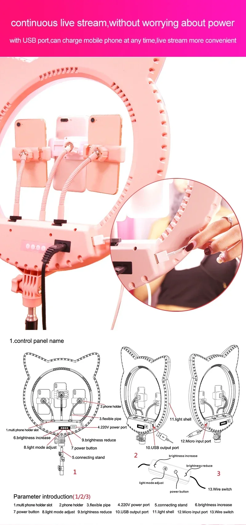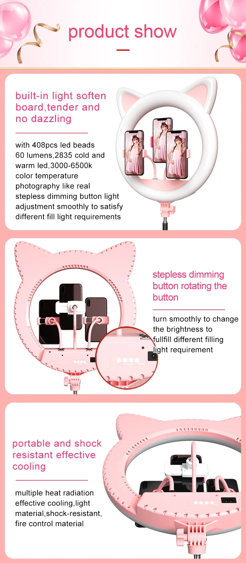 | product name | cat ear shape 20 inch ring light |