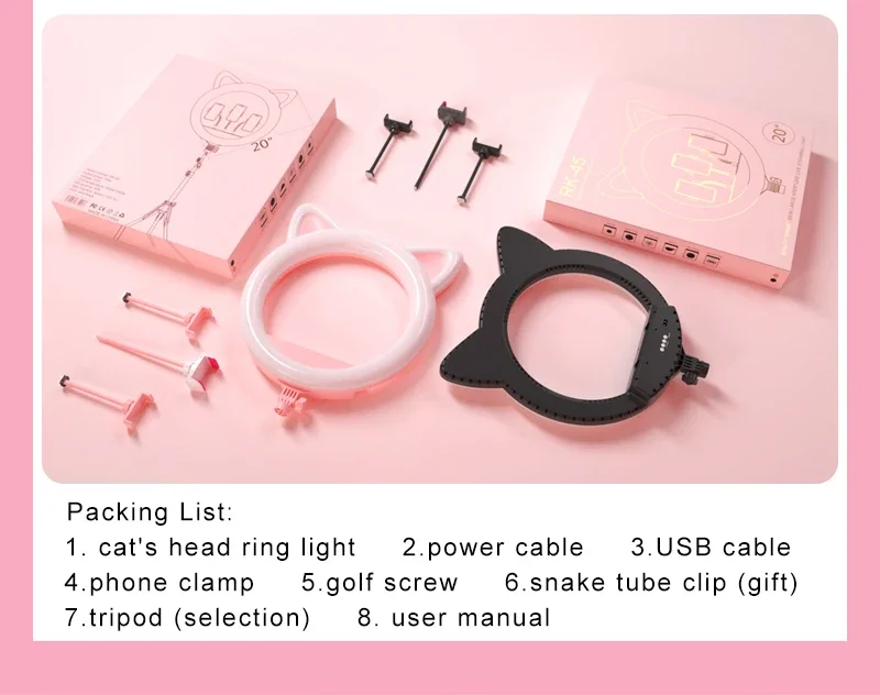 20-inch large aperture live ring light, cute cat beauty selfie light RK45