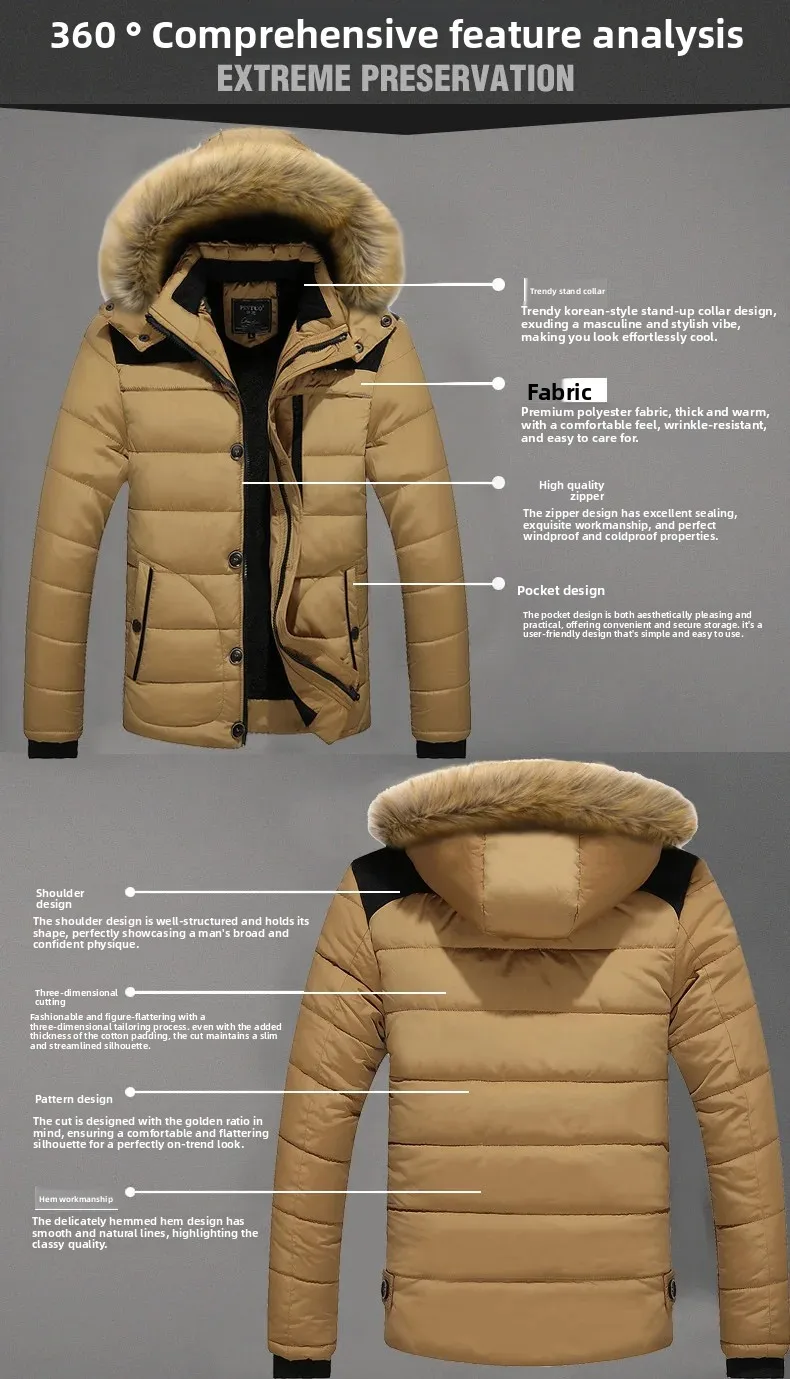 New Arrival Thickened Fleece Lined Hooded Cotton Men's Jacket