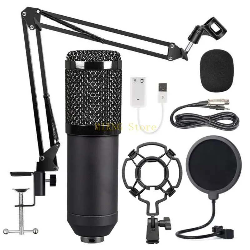 ♥Professional Recording Stu dio Equipment: Equipped with BM-800 microphone, Shock mount, Po p filter, Mic adjustable suspension scissor arm stand, Anti-wind foam Cap, Power cable, Sound card