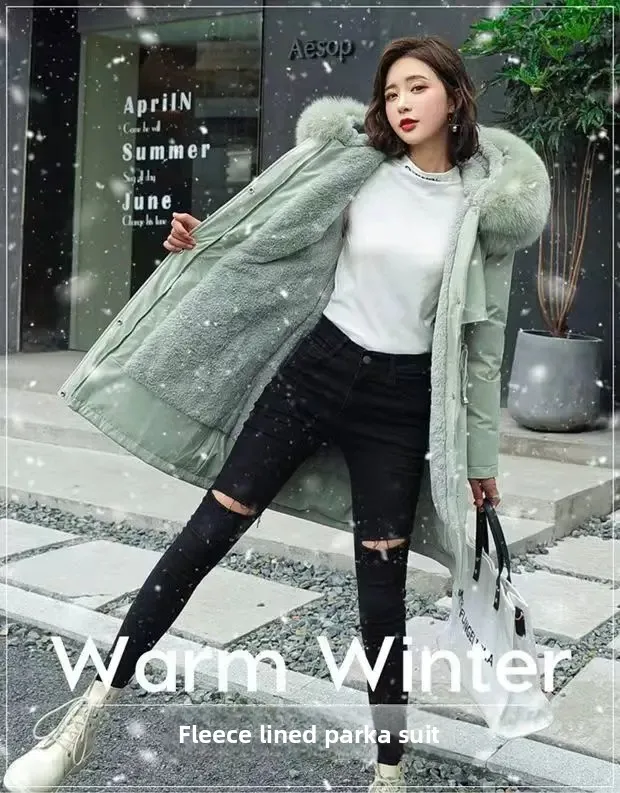 Women's Parka Style Thickened Fleece Lined Cotton Jacket