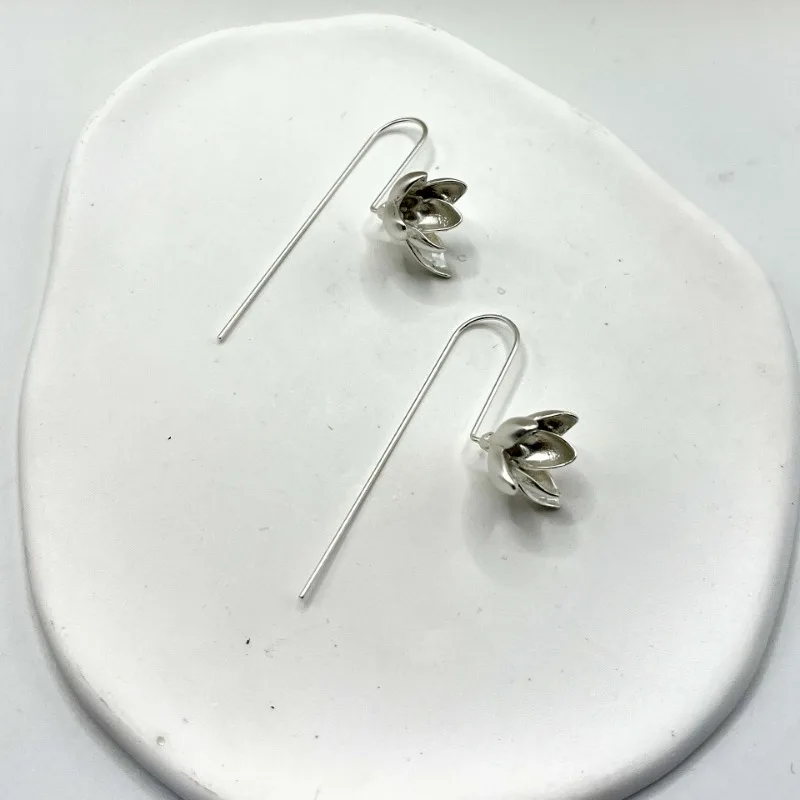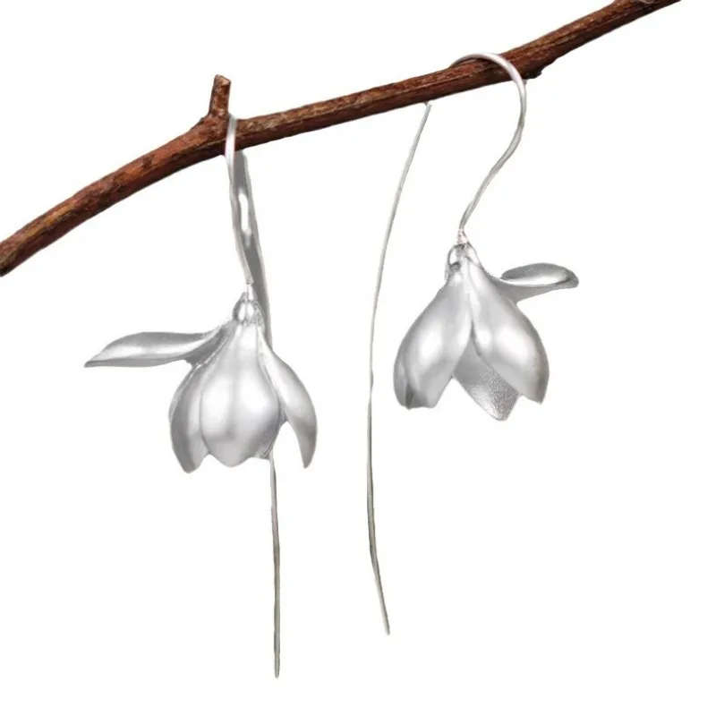 Magnolia Flower Sterling Silver S925 Women's Earrings