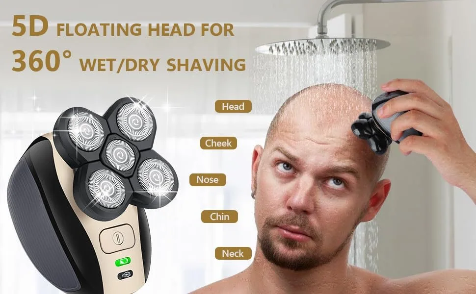 [Wet Dry Shave & Easy Cleaning] IPX6 Waterproof technology allows you to shave wet with gel or foam for extra skin protection or dry for convenience. Idea gift for your father,husband or boyfriend,especially suitable for the person who like to shave their heads.