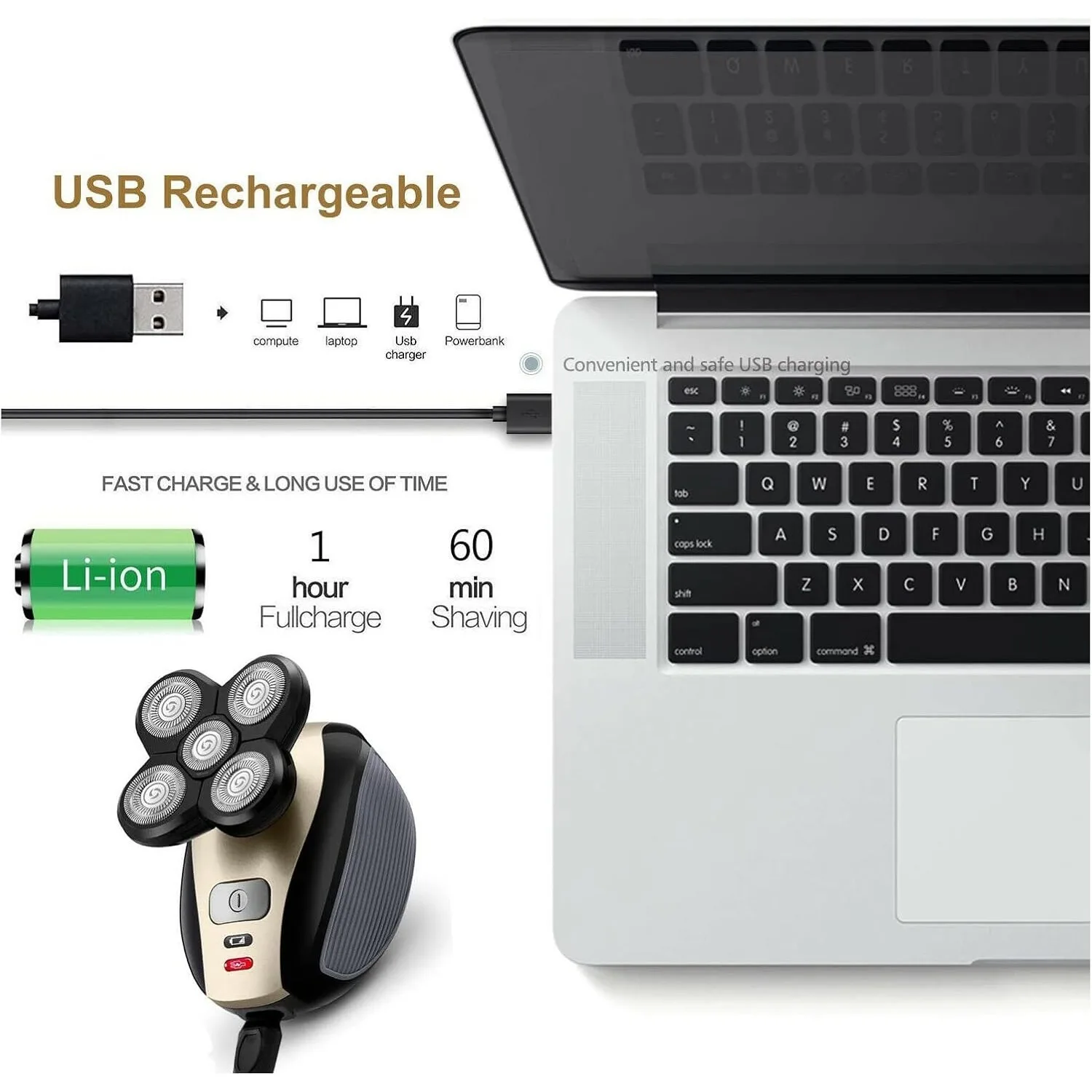 [Fast Charging & LED Intelligent Display - Powerful integrated lithium-ion battery allows quick charging and 90 minutes of cordless use, battery status with low power can also maintain stable power operation. The large smart LED screen will remind you of the power and usage time of the electric shaver, long press 3 seconds to turn on/off the travel lock, stall protection and cleaning reminder. Electric head shaver comes with a USB charging cable, suitable for home travel.