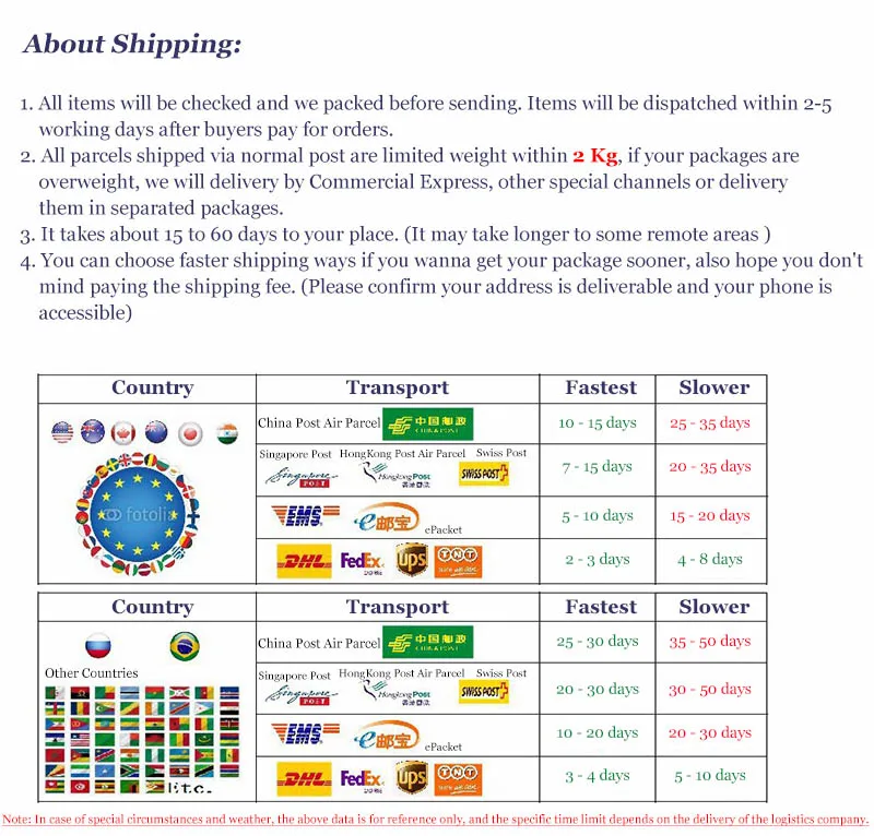 2. Time in transit: Transit time varies with different shipping methods.