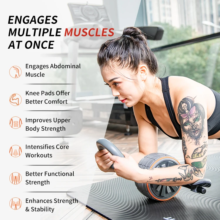 Abdominal Roller Abs Wheel with Elbow Support Knee Pad 4D Abs Roller
