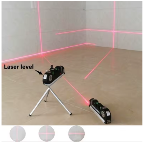 Switch laser modes by adjusting the dial: vertical line (lowest setting), horizontal line (highest setting), or cross lines (middle position).