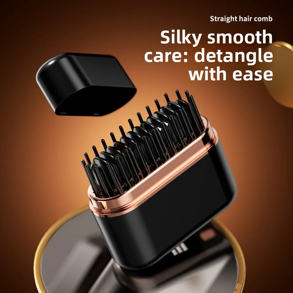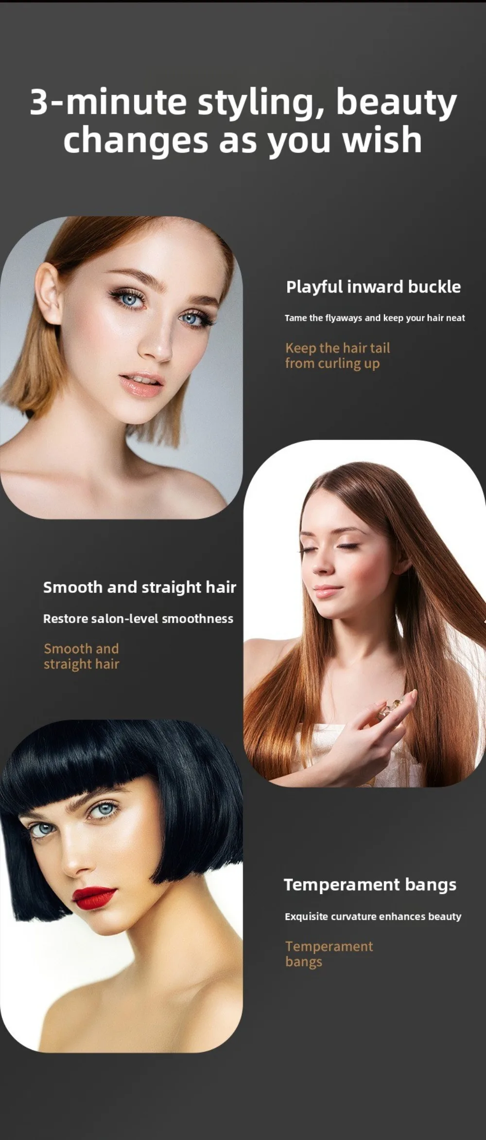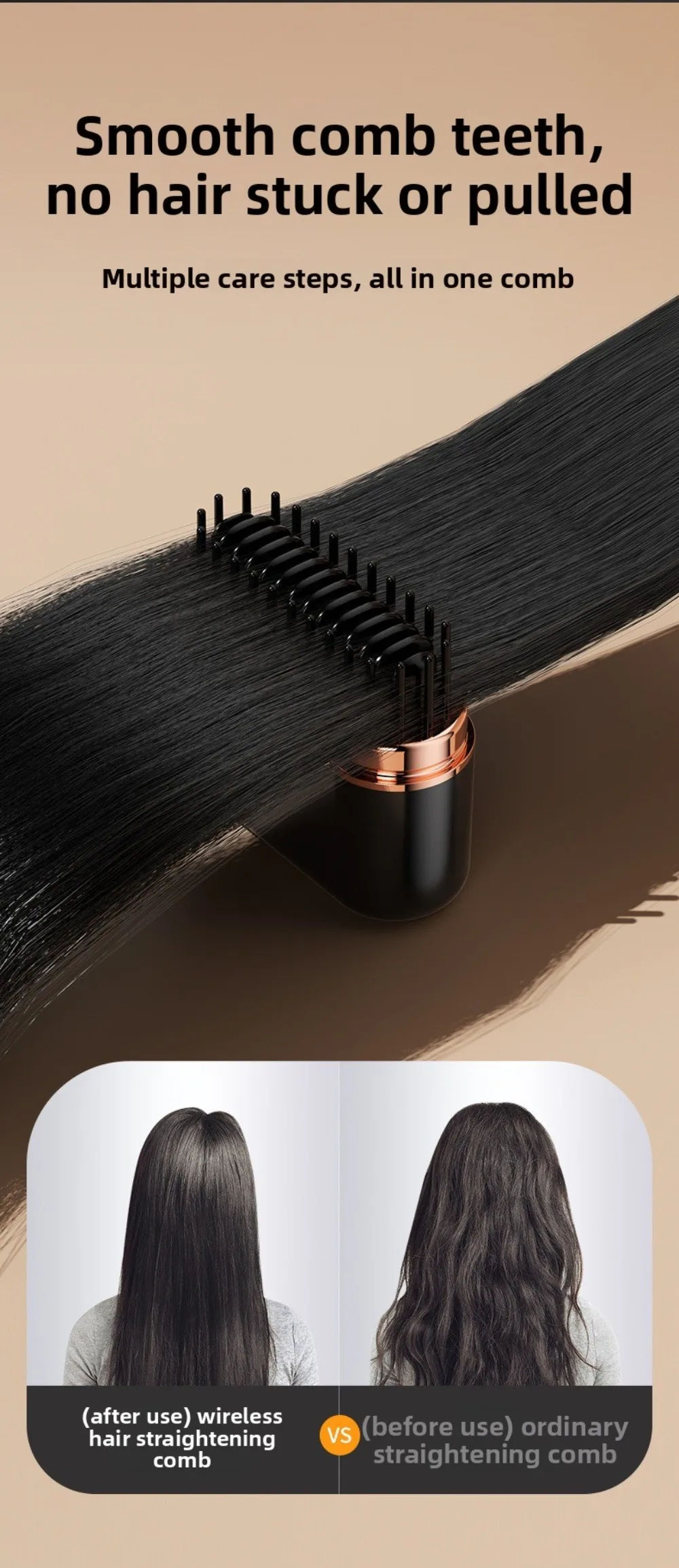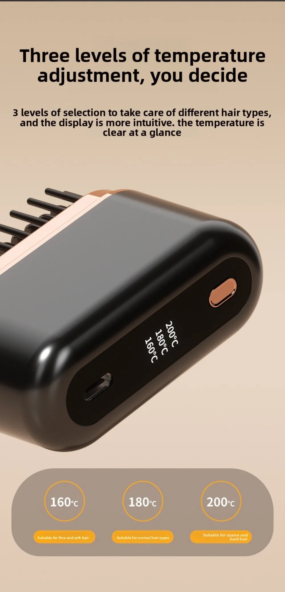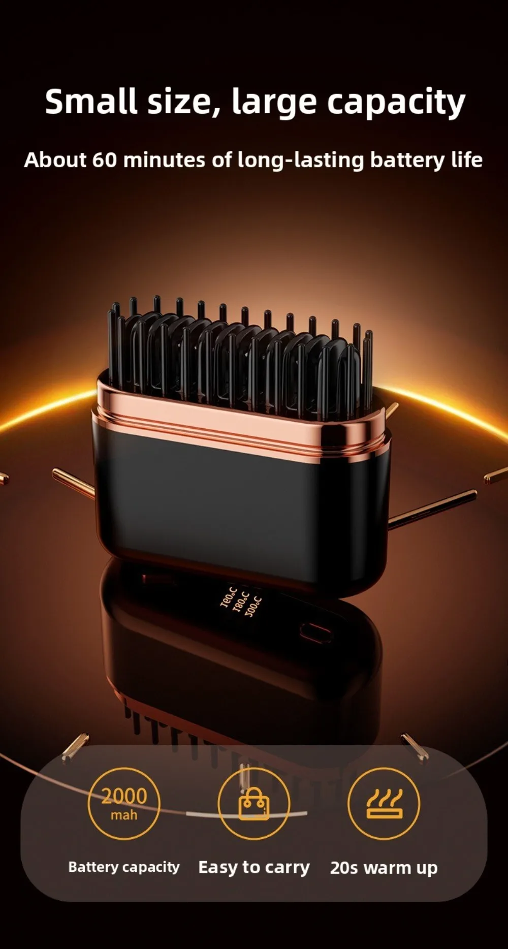 2-in-1 Versatility & Tangle-Free Smoothing -This mini hair straightener works as both a flat iron and a detangling comb. The round toothed comb design glides through hair effortlessly, from sofa to rolling strands, fitting every strand snugly for smooth, straight hair without pulling or snagging.