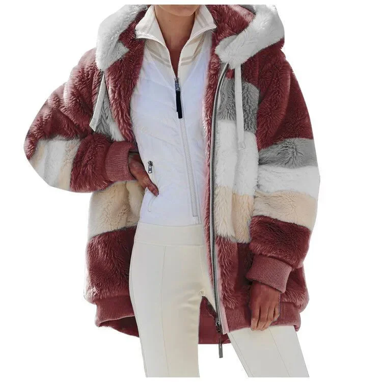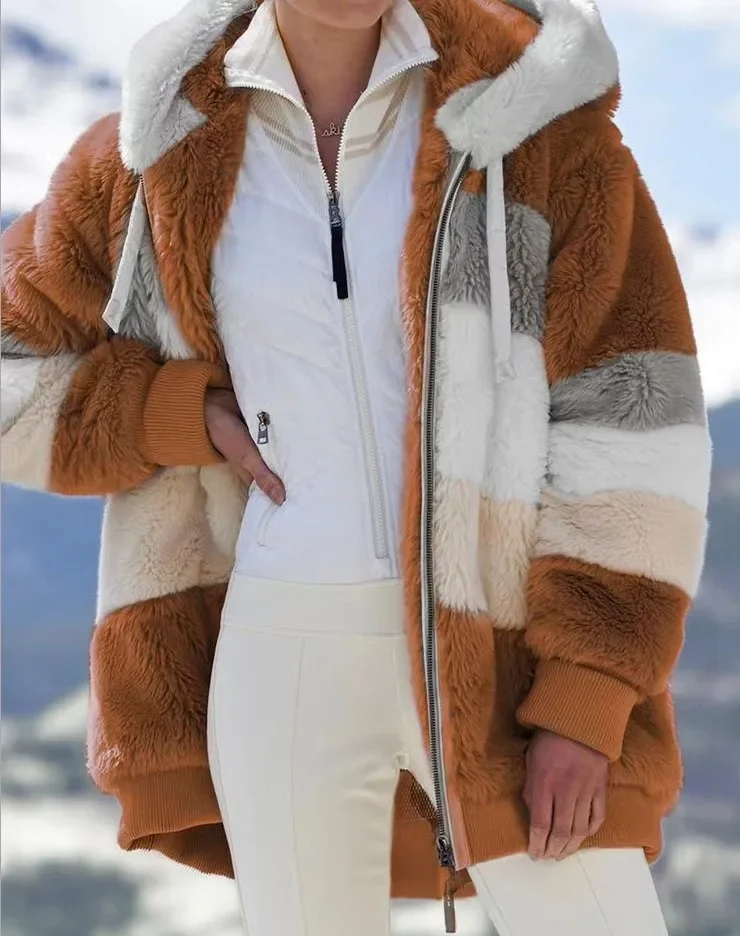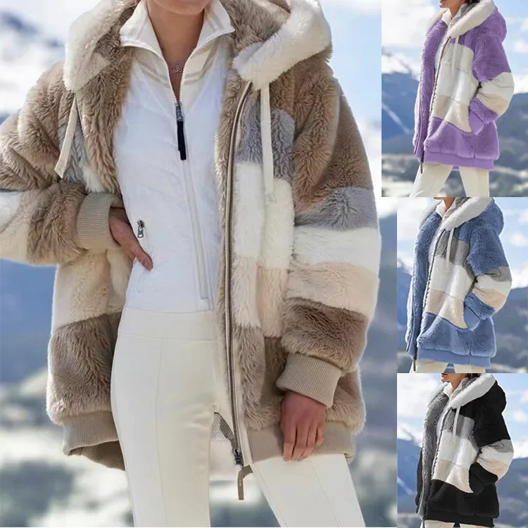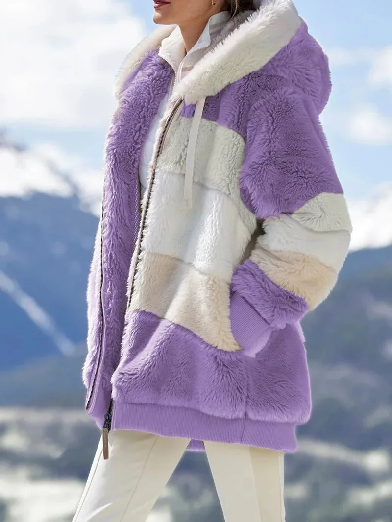 • Color Matching Plush Hood : The plush hood not only adds a cozy feel but also matches the coat's color, enhancing its aesthetic appeal.